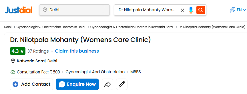 Address: Women’s Care Clinic, Katwaria Sarai & Shahpurjat, New DelhiVisiting Hours:
